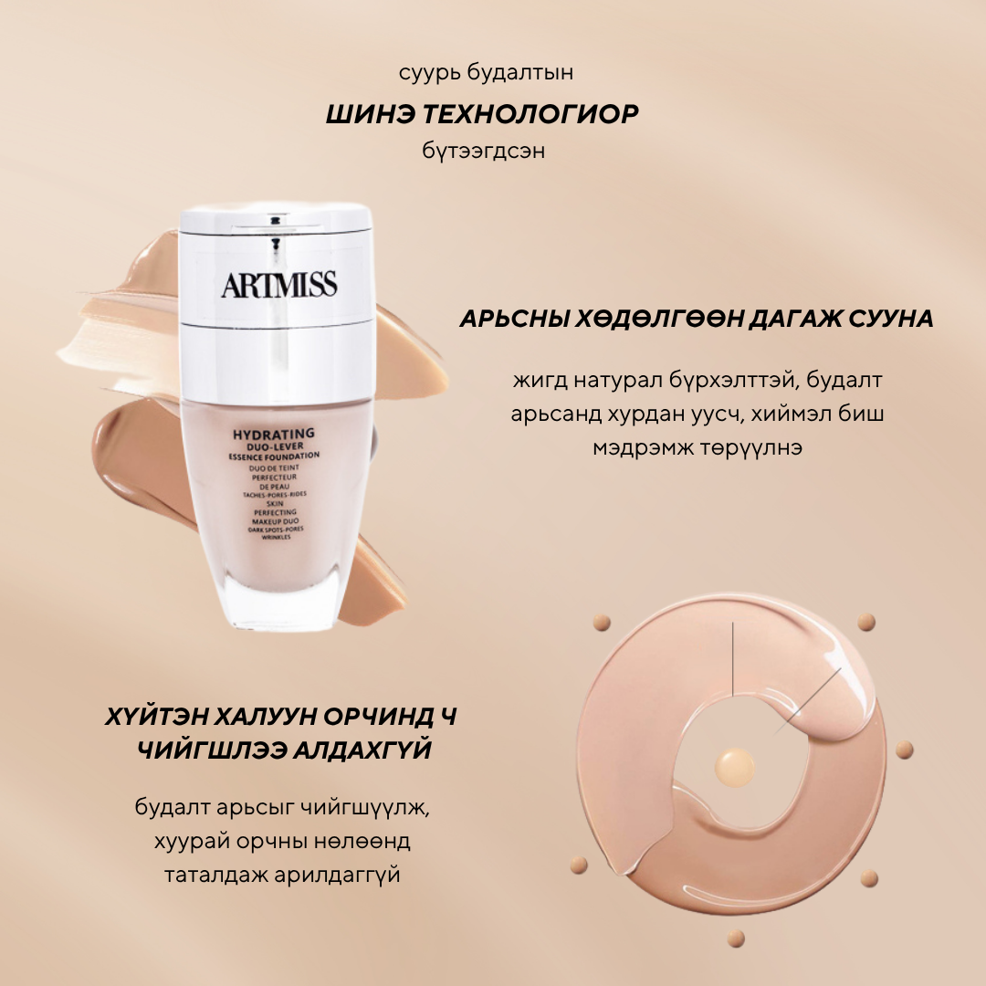 Шингэн крем нь нимгэн бүтэцтэй будаагүй мэт натурал харагддаг. Шахмал кремийг өө сэвтэй хэсэг дээрээ тавьж өөгүй нимгэн төгс суурьтай будалт хийх боломжтой