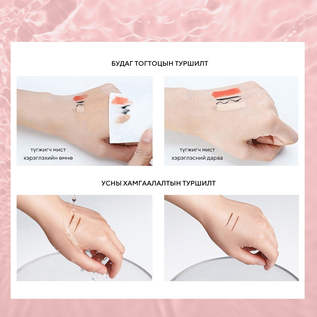 Түгжигч мистийг цацсаны дараа арьсны гадаргуу дээр хальсан бүрхүүл үүсэж, бусад гадаргууд наалдахгүй, 24 цаг арилахгүй тогтоно